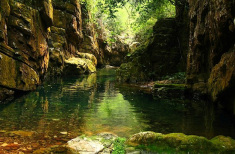 在虹橋之上約100余米。峽長40米,兩旁峭壁高聳,中間一條小路,僅容1人通過。峽中習(xí)習(xí)生風(fēng),仰首只見藍(lán)天一線,因此又叫“一線天”。民間傳說,有緣份的人往往可以在在這里和神仙相會。長峽南端入口處石壁上,刻有寬能法師題寫的“神仙峽”三個(gè)大字。原來,會仙峽又叫神仙峽。