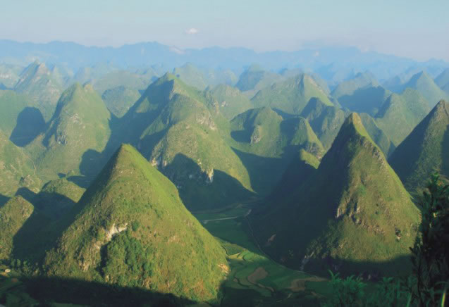 廣西樂業(yè)-鳳山世界地質(zhì)公園,位于廣西西北部云貴高原向廣西盆地過渡的斜坡地帶,由百色市樂業(yè)大石圍天坑群國家地質(zhì)公園和鳳山巖溶國家地質(zhì)公園組成,總面積930平方千米,F(xiàn)已發(fā)現(xiàn)大小天坑30個,是世界上最大的天坑群之一。地質(zhì)公園區(qū)中鳳山三門海景區(qū)擁有高穴馬王洞和水上天坑等地質(zhì)遺跡。天坑群中以大石圍天坑規(guī)模最大,深度和容積居世界第二;坑底森林面積10.5 萬平方米。