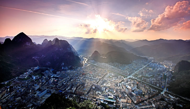 鳳山縣,隸屬于廣西壯族自治區(qū)河池市,地處云貴高原南部邊緣地帶,地勢由西北向東南傾斜,山多地少,典型的喀斯特巖溶地貌,自然旅游資源異常豐富,70%面積為大石山區(qū),30%面積為土山區(qū),耕地面積101726畝。屬亞熱帶季風(fēng)氣候區(qū),雨量充沛,光照充足,溫和濕潤,年平均氣溫20.1℃,全年降雨量1564.0毫米,無霜期362天。鳳山縣常住人口為169845人。總面積1729平方千米。