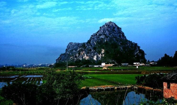 在靈山縣三海鎮(zhèn)梓崇村馬鞍山,山為喀斯特孤峰,形似馬鞍,山下有東勝巖、葡地巖和盡頭巖三洞。 1960年,廣東師院、廣東省文物管理委員會考古隊和中國科學院古脊椎與古人類研究所賈蘭坡、顧玉珉、顧閻等在東勝巖發(fā)現(xiàn)1塊顳骨的鼓室部、兩顆牙齒和一段左側(cè)股骨上段,在葡地巖發(fā)現(xiàn)1塊頂骨和3塊額骨,東勝巖還出土熊的化石和鈣化蝸牛,葡地巖出土中國犀牛、野豬、鹿和;,專家研究鑒定為更新世末期的人骨化石,命名為靈山人化石出土地點,此外,還在石背山洪窟洞古人類遺址,出土1塊頂骨、1塊髖骨、1枚上臼齒、2枚板齒,代表老年個體、屬舊石器時代,在石塘鄉(xiāng)鐘秀山滑巖洞遺址,發(fā)現(xiàn)10塊頭骨、70枚牙齒、1塊髖骨、1件穿孔石珠和一些網(wǎng)紋、繩紋陶片,研究鑒定為新石器時代的人骨。 1962年2月廣東省靈山縣綠水公社綠水村社員在一處山坡上挖出了一件銅鼓,廣東省文物管理委員會得知后,派員至現(xiàn)場作了調(diào)查,并將銅鼓運回廣州,發(fā)現(xiàn)銅鼓的山崗很高,約二百余米,銅鼓就埋在半山坡距地面約三四十米的地方,在山崗周圍沒有發(fā)現(xiàn)什么古代文化遺址或墓葬,附近也沒有找到什么共存遺物,只在銅鼓內(nèi)殘存的泥土中找到了一枚唐代的開元通寶,說明這只銅鼓是在唐代或以后才被埋入土中,銅鼓很大,面徑81、通高47厘米,除足部稍。