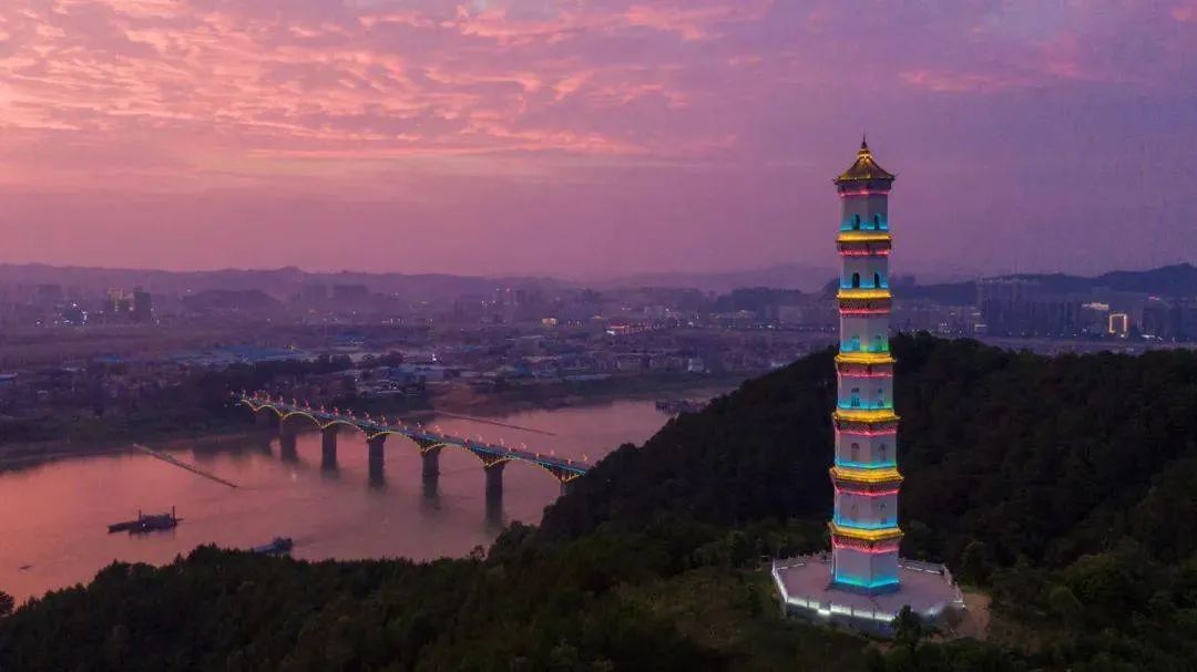 沿著棧道拾級而上,途經(jīng)風景宜人、空氣清新。在炳蔚塔登高遠眺,可以觀賞延綿峰巒、俯瞰西江大橋、領(lǐng)略百舸競渡,潯江美景盡收眼底。