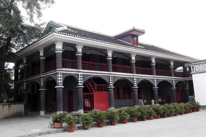 樓房座北朝南,為中西合璧磚木結構建筑,一樓一底,歇山式屋頂,上開一“老虎天窗”廊柱卷拱護欄組合,整個主樓面闊27.75米,進深16.95米,通高12米,是當時遵義城里首屈一指的宏偉建筑。進入大門,穿過門廳和牌坊后,主樓呈現(xiàn)眼前。