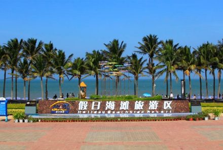 于1995年7月開業(yè),是國家AAAA級旅游景區(qū),地處?谑形骱0稙I海大道一側(cè),是一個(gè)集陽光、海浪、沙灘等元素為一體的濱海旅游休閑勝地。景區(qū)跨度綿延長達(dá)6千米,左側(cè)是蔥翠的林麻黃林帶,右側(cè)是碧波萬頃的瓊州海峽,海面船只穿梭,犁銀濺玉。這里陽光、海水、沙灘、椰樹相映成趣,構(gòu)成一幅美麗動人的自然畫面。整個(gè)景區(qū)由海灘日浴區(qū)、海上運(yùn)動區(qū)、海洋餐飲文化區(qū)和休閑度假區(qū)四個(gè)部分組成。