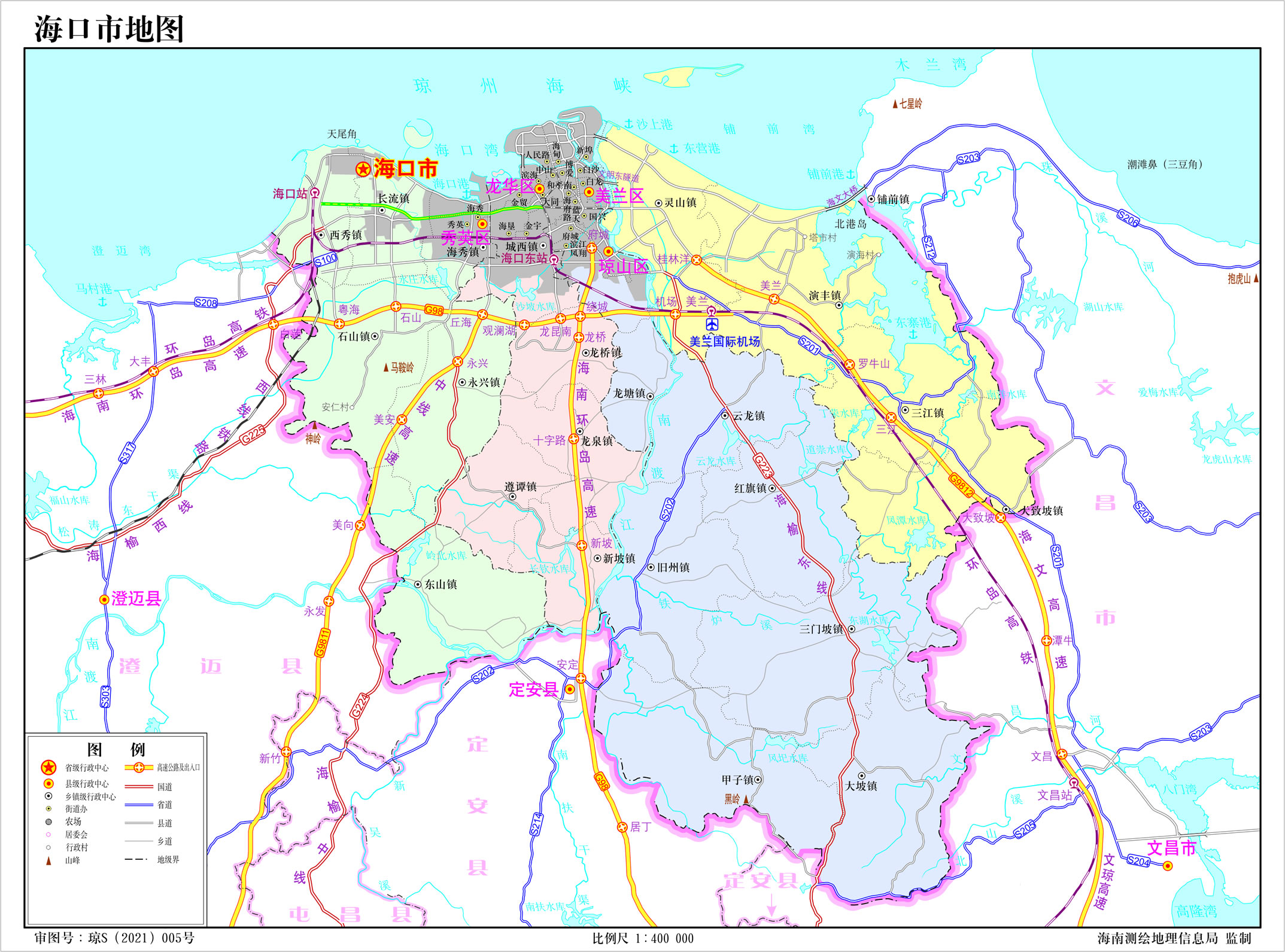 行政區(qū)劃:瓊山區(qū)、龍華區(qū)、秀英區(qū)、美蘭區(qū)