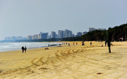 民國初期,男著唐裝對襟衫和套褲,紳士班也有著長袍者。女著鑲邊唐裝包襟衫,套褲。富者多著綢緞,一般市民、農(nóng)民以棉布為主。20~30年代,增加學(xué)生服、西服、中山裝、襯衫、衛(wèi)生衫、汗衫等新品種。公職人員多著中山裝,一些僑眷和市民穿西服,學(xué)生穿學(xué)生服。50年代,男女服式以對襟恤衫和西裝褲為多,唯老婦人仍穿大襟套褲。男子盛行藍(lán)灰色的中山裝、列寧裝、青年裝和學(xué)生裝,女子多穿中裝和女式列寧裝,也有著裙子者。80年代,服式變化很大,男裝有西裝、港衫、茄克衫、獵裝、滑雪衫、運動服、風(fēng)衣等;女裝更呈五彩繽紛,有各式旗袍、夾克,各類毛針織衣衫、連衣裙、西褲、套裙、超短裙等。男女青年的褲子式樣各異,有直筒褲、喇叭褲、牛仔褲、健美褲、西褲等。布料、顏色都講求質(zhì)量和鮮艷。少數(shù)女青年衣著以“袒、透、緊”為時髦;中老年服裝仍以軍便裝、兩用衫為多;童裝則花樣百出,琳瑯滿目。公安、稅務(wù)、郵電等特殊行業(yè)的公職人員,上班時穿工作服,醫(yī)生穿白大褂。黎苗同胞,除了中老年人仍穿民族服裝外,多數(shù)青年男女改著漢族服裝。