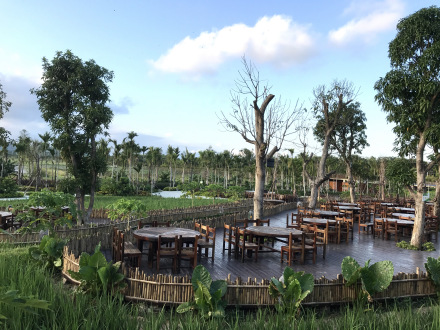 “稻田盛宴”是水稻國家公園稻田邊“長出來”的原生態(tài)餐飲品牌,將中國五千年的“稻文化”“米文化”與當(dāng)?shù)亍袄杓椅幕苯Y(jié)合,打造特色田園風(fēng)情大型鄉(xiāng)村主題餐廳。圍繞中國“稻文化”、“海洋文化”主題,在椰樹下、稻田旁、鴨塘邊,滿足對“吃”的美妙想象。