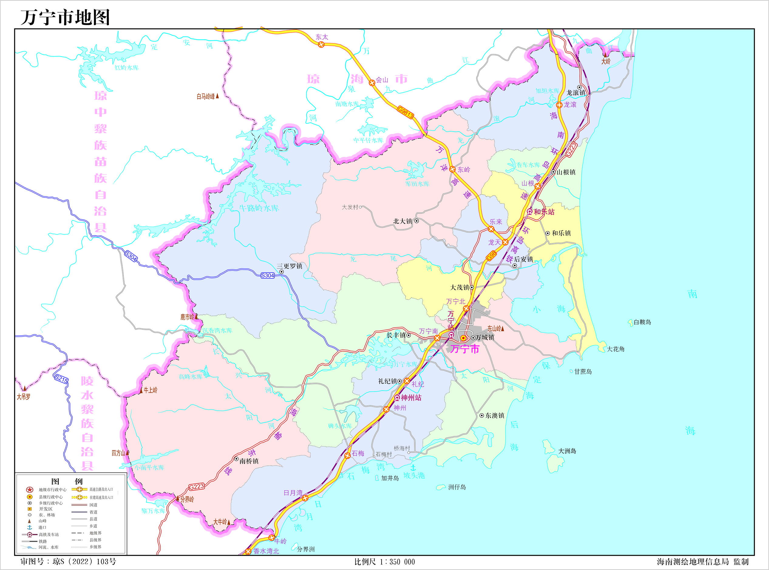 1996年8月5日,撤萬寧縣,設萬寧市,以原萬寧縣的行政區(qū)域為萬寧市的行政區(qū)域。