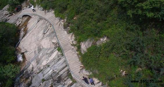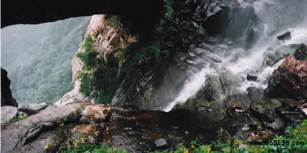 天生橋瀑布群,在阜平縣城西南30多公里處百草坨東側(cè),分布著九個(gè)大瀑布,一座天然形成的橋梁,被專家鑒定為中國(guó)北方最大的瀑布群和由變質(zhì)巖形成的中國(guó)最大的天生橋。瀑布群集中在與百草坨相連的一條溝谷中,最高的瑤臺(tái)瀑布落差112.5米。天生橋是由瀑流沿山谷裂隙沖蝕、崩塌形成的,長(zhǎng)27米,寬13米,高13米,與流量最大、落差最高的瑤臺(tái)山銀河瀑布組合,形成了一個(gè)天然地質(zhì)奇觀。盛水期飛流直下,如天馬奔騰,驚天動(dòng)地;枯水期清流潺潺,聲韻清脆,宛如輕音樂(lè)協(xié)奏曲。冬季瀑布水凝,生成千千萬(wàn)萬(wàn)、大大小小、姿態(tài)各異的冰柱,猶如鬼斧神工造化的玉雕。