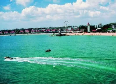 位于河北省昌黎縣東南面的渤海岸邊,海岸線全長52.1公里,具有沙細,灘軟,水清,潮平的特點,是進行海水浴、陽光浴、沙浴、森林浴、空氣浴的理想地點。