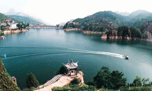太行三峽—京娘湖 東太行山武安市京娘湖,據(jù)馮夢龍編《警世通言》記載,宋太祖趙匡胤千里送京娘曾路宿于此山中。京娘是山西永濟(jì)人,年方十七歲, 隨父母去曲陽燒香還愿遭劫,幸遇趙匡胤拔刀相救,千里護(hù)送,京娘感恩不盡,欲以終身相托。然而趙曰:“賢妹非是俺膠注鼓瑟,本為義氣千里相送,今若就私情與那個(gè)響馬何異?況施恩圖報(bào)非君子所為 。”京娘道:“恩兄高見,妾今生不能補(bǔ)報(bào)大德,死當(dāng)銜環(huán)結(jié)草。 ”于是京娘投湖自盡,(后被追封為貞義夫人)京娘湖亦由此得名。 湖面呈倒“人”字型,分東西兩支,水面2445畝,水深20-50米。中間 山島建有“山頂公園”清山綠水與藍(lán)天白云相互輝映,薈萃人典故, 使此地有“太行三峽”之美稱,尤其是巖壁上當(dāng)年趙匡胤“云崖寄志 ”的題詞手跡“欲出未來光辣撻,千山萬水如火發(fā)。須臾走向天上來 ,趕卻殘星趕卻月”。及其它歷史傳說,使景區(qū)更加神秘誘人。這里 層巒疊嶂,群峰竟秀,波光粼粼,林林茂盛。夏季炎熱之時(shí),清爽宜 人,為避暑勝地。