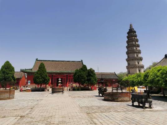 寶云寺內(nèi)有一塔,高36.5米,塔體為八面棱錐體磚木結(jié)構(gòu),自四層以上四面有門,塔的各層建筑風(fēng)格各異,或成鴛鴦斗拱,或成梅花斗拱,雄渾古樸,氣勢磅礴。若登塔頂,需有一定的勇氣,因為每登一層都要繞塔沿半圈,找到另一側(cè)的入口。寶云塔原名擎天塔,位于衡水市區(qū)西南的舊城村東。該塔原在寶云寺內(nèi),因此稱寶云塔。
