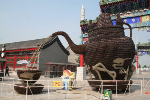 本燈組取材于唐山民俗文化,燈組以茶湯大銅壺為主體形象,古色古韻。茶壺采用特殊材料棕色藥瓶來(lái)制作,茶壺倒出茶水時(shí)會(huì)有流水追光效果,讓觀眾仿佛能夠聞到茶香四溢。