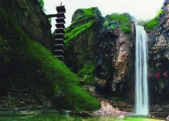 泉井 天桂山俗有“九泉一井”之說,最大的如沕沕水源頭靈泉,是沕沕水瀑布的水源。瀑布 “沕沕水瀑布”在天桂山景區(qū)西南沕沕水村!皼^沕水瀑布”古為平山十景之一,俗有“沕水瀑布從天降”之說。沕沕水為天然泉水,流量為0.35立方米/秒,垂直落差93米,形成天然奇觀。除沕沕水瀑布外,天桂山還有青龍觀瀑布、葫蘆谷瀑布等,旱時(shí)輕泄如簾,雨季下注如飛,水聲潺潺,一片涼意。