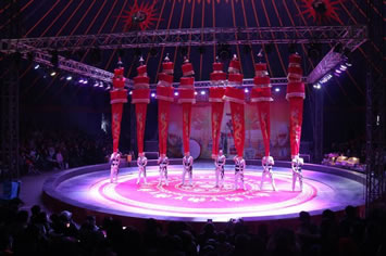 以各種動(dòng)物表演為主,如老虎騎馬、非洲獅穿火圈、大象按摩、狗熊耍大刀、山羊走鋼絲、狼狗認(rèn)字、猴子騎單車、等動(dòng)物滑稽表演。