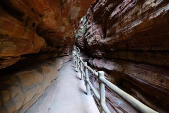 峽長(zhǎng)4000米,一般寬1到2米,最窄處只有十幾厘米,壁高150米,這里紅巖絕壁,險(xiǎn)峰對(duì)峙,黃巢曾在此聚兵起義,抬頭仰望,青天一線,俯視腳下,水流不斷,相隔不遠(yuǎn)便有一道瀑布,溪水清澈見底,清涼透骨。