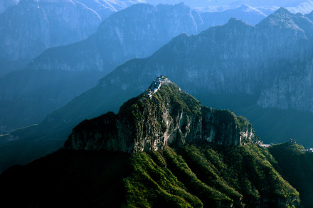道教素有“南有金頂在武當,北有鐵頂在太行”之說,其中的鐵頂就是老爺頂。老爺頂海拔1570米的云際孤峰之上,峰頂“玄天上帝”大殿等建筑群全石無梁,八封窿頂,鐵瓦覆頂,還有鐵鑄的玄武神像、鐵鼎、鐵鍋等等,一切都以“鐵”聞名著稱,被譽為“天下第一鐵頂”。