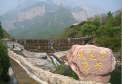 “紅石河”位于大瀑布源頭,由于海拔1100米,故又名“太行天河”。河床為紅石砂巖,光潔平瑩,碧水橫溢,紅綠相映,色彩斑斕,明麗如畫。這正是王維“明月松間照,清泉石上流”詩句的寫照。有百年好合樹、百年老屋、觀音洞、回音壁、蘑菇石、黑龍?zhí)、仙女池、五彩泉等景點。