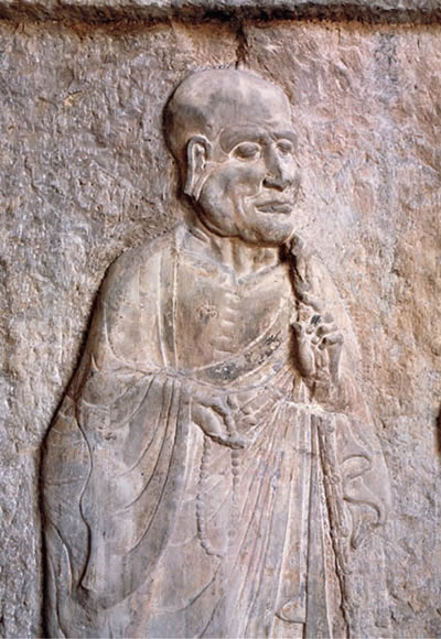 唐代龍門石窟的重點洞窟中,以盧舍那像龕一組尺度宏偉的藝術群雕琢最為著名。這座依據(jù)《華嚴經(jīng)》雕鑿的暢開式像龕,以雍容大度、氣勢非凡的盧舍那佛為中心,用一周極富情態(tài)質感的美術群體形象,將佛國世界那種充滿了祥和色彩的理想意境表達的淋漓盡致、流韻綿長。