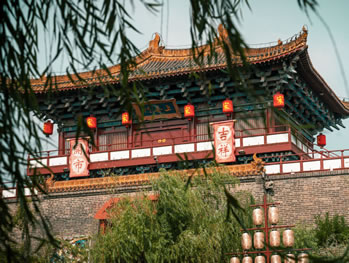 現(xiàn)在復(fù)原的城門高21.6米,面積1553平方米,門洞就高達8米。城樓上,金碧輝煌的彩繪更顯示出它的輝煌與壯觀,人們稱贊它“勾梁畫棟,氣宇不凡”。在等級森嚴的封建社會,連建筑也要分三六九等。從上善門的宏偉氣勢,就可以看出它的重要地位。