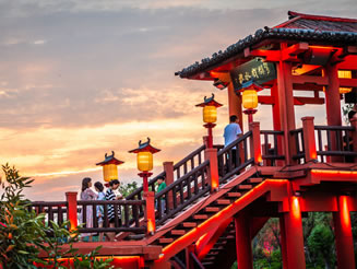 八闋經(jīng)典宋詞和一幅《清明上河圖》串聯(lián)的畫面,將精心選擇的北宋印象包含進去,以喚起一個民族對興衰的思考和渴望崛起的激情!洞笏巍|京夢華》實景演出選擇在清明上河園皇家園林區(qū)的景龍湖上,充分利用了亭臺樓榭、水榭橋廊,構(gòu)成了一個完整的古典實景劇場。