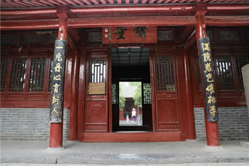 古代儒家倡導(dǎo)有道統(tǒng)就有治統(tǒng),因?yàn)椤爸谓y(tǒng)得道統(tǒng)而盛,道統(tǒng)賴(lài)治統(tǒng)而光!奔漓氲澜y(tǒng)三圣人,是嵩陽(yáng)書(shū)院的傳統(tǒng),在中國(guó)古代書(shū)院中,唯有嵩陽(yáng)書(shū)院保存此種祭祀形式。柱聯(lián)為清末政治家林則徐所作: “海納百川,有容乃大;壁立千仞,無(wú)欲則剛”。