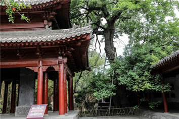 二程手植槐,樹(shù)高19.5米,圍粗4米。雖然樹(shù)干嶙峋,中空外實(shí),槐冠卻叢撥陰濃,新枝簇簇,樹(shù)姿優(yōu)美,老而不衰。相傳為北宋理學(xué)名家程顥到嵩陽(yáng)書(shū)院講學(xué)時(shí)親手所栽。