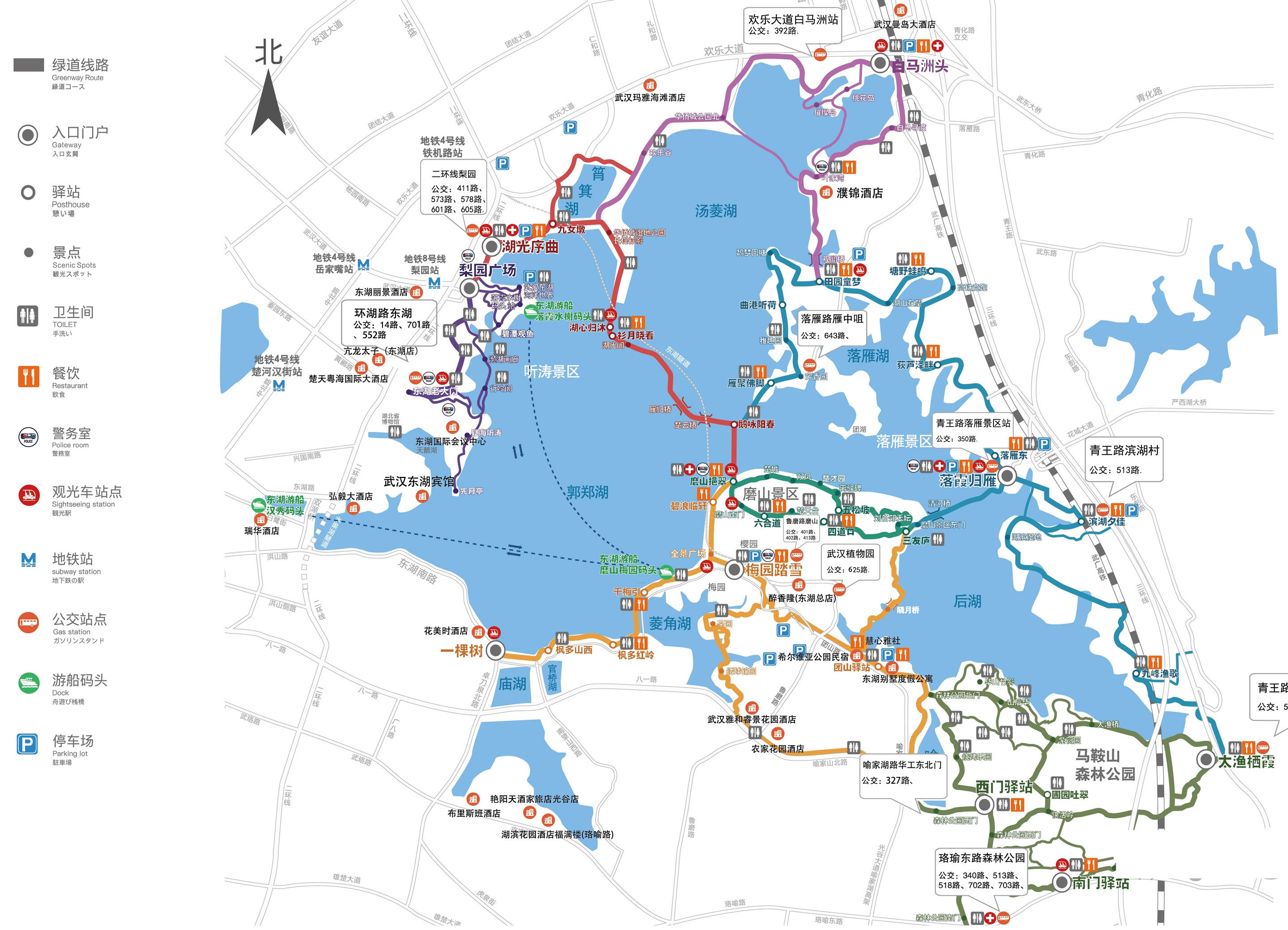 東湖綠道一期長28.7公里,串聯(lián)起東湖的磨山、聽濤、落雁三大景區(qū),將打造湖中道、湖山道、磨山道、郊野道4條主題綠道以及4處門戶景觀、8大景觀節(jié)點(diǎn)。