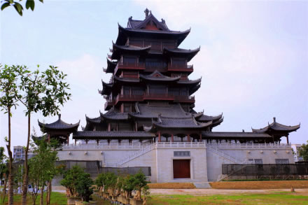 “圓通”一詞來源于佛典中的“圓通菩薩”該建筑于2009年上半年破土動工,是由宮殿式石臺座和紅木榫卯結(jié)構(gòu)組合而成,其風(fēng)格為內(nèi)五層外三層四滴水樓閣式建筑,是中國大型傳統(tǒng)木結(jié)構(gòu)建筑之一。此建筑基座長寬各60.8米,占地4139平方米,高60余米。除了將請進(jìn)25尊圓通菩薩外,此前運(yùn)至歸元寺的一塊重達(dá)3.2噸的“鎮(zhèn)寺之寶”和田玉將被打造成一尊2噸重的彌勒佛像一并在這里展出。2011年8月26日圓通閣已圓滿舉辦“上梁”儀式,預(yù)計(jì)在2012年完工。