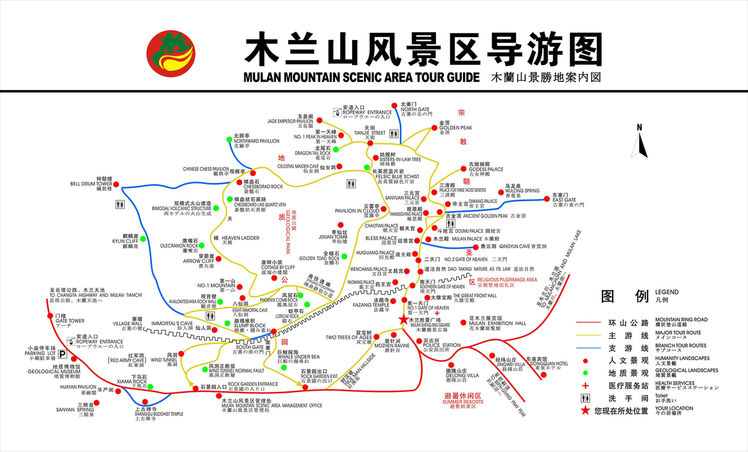 木蘭山景區(qū)是千年香火圣地,其宗教活動始于隋唐、盛于明清,佛道兩教共處一山,每年海內(nèi)外香客游人絡(luò)繹不絕。已被列為國家重要景點之一,進(jìn)入全國假日旅游信息預(yù)報系統(tǒng)。自前向后有南天門、二天門、回光殿、木蘭將軍墳、木蘭殿、斗姥宮、朝天門、報恩殿、帝王宮、三清殿、娘娘殿、玉皇閣、金頂?shù)染包c。木蘭山作為國家地質(zhì)公園,廣泛分布著有7億5千萬年歷史的藍(lán)片巖。 景區(qū)常年舉辦國際A級賽事全國山地戶外挑戰(zhàn)賽和木蘭廟會、木蘭山登山節(jié)。整個風(fēng)景區(qū)分為古寨區(qū)、石景區(qū)、花苑區(qū)、山莊區(qū)四區(qū)。