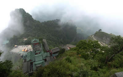 紫霄宮:建于明永樂十一年(公元1413年),原建宮殿、廊廡、齋堂、亭臺(tái)等860多間,賜額“太元紫霄 宮”。紫霄宮背依展旗峰;面對(duì)照壁、三臺(tái)、五老、蠟燭、落帽、香爐諸峰;右為雷神洞;左為禹跡池、寶珠峰。周圍山巒天然形成一把二龍戲珠的寶椅,明永樂皇帝封之為“紫霄福地”。