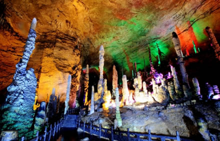 黃龍洞位于湖南省張家界市核心景區(qū)武陵源風(fēng)景名勝區(qū)內(nèi),是世界自然遺產(chǎn)、世界地質(zhì)公園武陵源的有機(jī)組成部分,屬典型的喀斯特巖溶地貌,以其龐大的立體結(jié)構(gòu)洞穴空間、豐富的溶洞景觀、水陸兼?zhèn)涞挠斡[觀光線路獨(dú)步天下,被列為國際旅游洞穴會員、全國35個王牌景點(diǎn)之一、中國首批AAAA級旅游景區(qū)、中國旅游首批知名品牌、中國馳名商標(biāo)、湖南省最佳旅游景區(qū)、張家界旅游精品線之一,享有“世界溶洞奇觀”、“世界溶洞全能冠軍”之美譽(yù),2005年被評選為“中國最美旅游溶洞”。