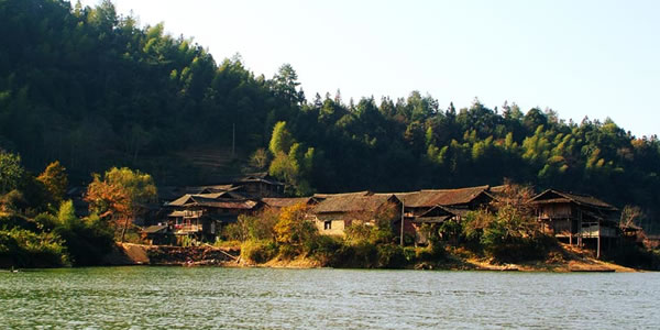 苗族寨落大多依山傍水,或在山?jīng)_,或在溪畔。村前寨后,喜植楓、椿、樟、梧,雜以棕櫚崐修竹。住宅大多為木結構建筑。其中雙層重檐木質卯榫結構的吊腳樓最有特色。吊腳樓下空間為牲畜圈、灰屋和廁所,一樓為住所,二樓為放置糧食等物的倉庫,一般四排三間,一正一橫;也有的六排五間,一正兩橫。一樓面前有較寬的走廊,連接中堂與橫屋。走廊靠檐邊裝有帶靠背的長條板凳。