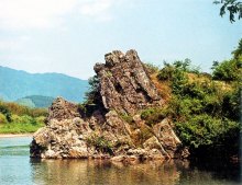 那些打漁撈蝦的人,在雨過天晴的時(shí)候,遠(yuǎn)遠(yuǎn)地會(huì)看到一個(gè)漂亮的女子跪坐在那塊石頭上,梳洗她那又長又黑的頭發(fā)。走近去一看,又沒有了。大家都曉得她就是炎帝的妃子,把妃子跪坐過的石頭叫做“胭脂石”。