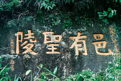 邑有圣陵位于炎陵故道,橋頭嶺下官壟口道旁,石壁上鐫刻乾隆十六年路碑“邑有圣陵”四個(gè)大字。炎帝去世后,人們把他安葬在鐘靈毓秀的“長沙茶鄉(xiāng)之尾”。幾經(jīng)周折,終于來到一個(gè)嶠陽嶺的地方。這里“四面嶄絕,鳥道羊腸”。站在嶠陽嶺上,舉目南望,只見群山環(huán)抱之中,有一塊平展開闊的原野。洣水三回九折,穿嶂過峽,奔騰而來。原野南端,層巒疊翠,虬木森森,煙云出沒,氣象萬千。認(rèn)為鹿原陂就是一塊富庶之地,至尊之地,文明發(fā)祥之地。辛勞一生的炎帝,應(yīng)該有這樣一塊安息之地。