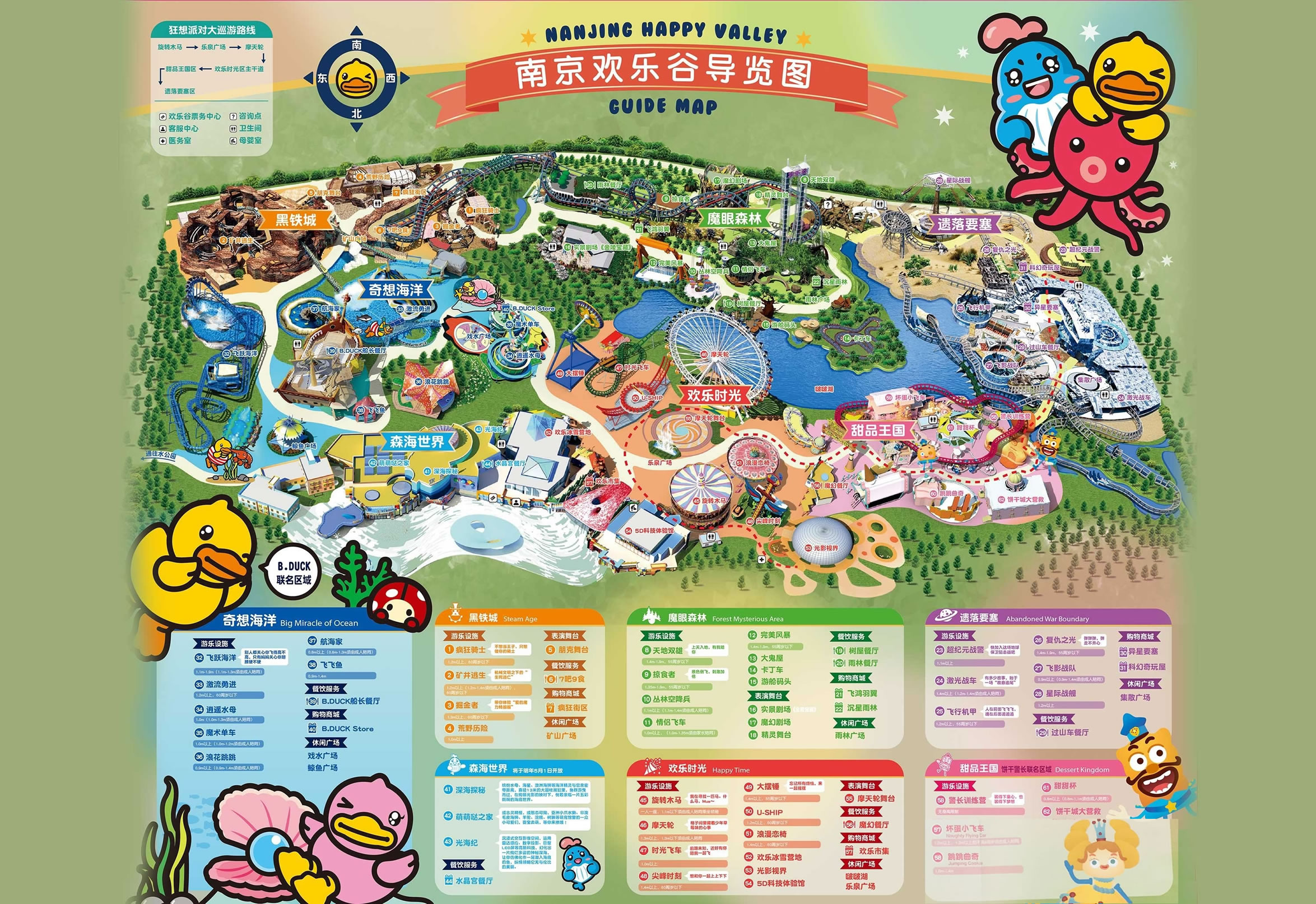 南京歡樂谷擁有歡樂時光、遺落要塞、甜品王國、黑鐵城、奇想海洋、魔眼森林六大園區(qū),與香港知名品牌B.Duck小黃鴨、動畫IP餅干警長進行了創(chuàng)意聯(lián)動。此外,南京歡樂谷首次在樂園中融入硬核蒸汽朋克風,推出集復古情懷、機械美學、哥特建筑等特色于一體的區(qū)域“黑鐵城”,為城市青年的假日休閑注入了更多的潮玩基因。