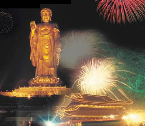 靈山大佛于 1997年11月15日落成開光,海內(nèi)外高僧大德及各地信眾千萬余人親臨現(xiàn)場。是日慈云瑞靄籠罩大佛金身,至開光儀式舉行,祥云飄升,大霧竟奇跡般地散去,預(yù)示法輪常轉(zhuǎn)佛光昔照。