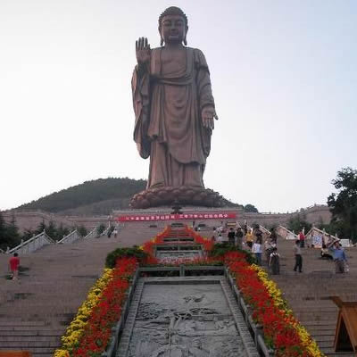 過一段時間以后,按照工程進度,佛腳的銅壁板要移挪現(xiàn)場正式安裝,這里又將空無一物。于是又想出用佛手代表佛腳的辦法。大佛的右手,形狀復(fù)雜又有高度,安裝相當(dāng)困難。但安裝以后,外形卻要好看得多,而且還顯得雄偉壯觀,頗有氣派。游客們的興趣也就更大了,逐漸成為一個正式的景點。
