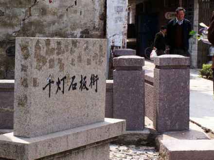 石板街,南北貫穿古鎮(zhèn),并連接各支路,呈蜈蚣形。全長(zhǎng)1.5公里,主干街道長(zhǎng)800米,由2072塊長(zhǎng)條形花崗巖鋪設(shè)而成。石板下面設(shè)有既寬又深的下水道,與古鎮(zhèn)各處的河埠、河灘相連通。因此,即使下滂沱大雨,石板街上從不積水,轉(zhuǎn)晴即干。