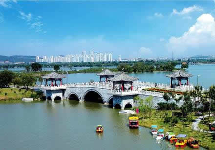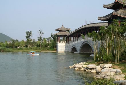 解憂橋:位于小南湖東南部,該橋?yàn)閱喂皹。一橋凌空。登橋遠(yuǎn)眺,湖山盡收。劉解憂為西漢時(shí)期徐州第二代楚王劉戊的孫女,為了和親她作為為漢家公主奉命遠(yuǎn)嫁烏孫國,為國家和人民的安寧獻(xiàn)出自己的寶貴青春。