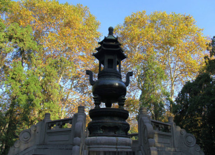 孝經(jīng)鼎位于中山陵正南面,1929年,孫中山先生靈柩奉安中山陵后,戴季陶和國立中山大學全體同學為表達對孫中山先生的敬仰和懷念之情,決定捐資鑄造一尊銅鼎,安放在中山陵前。