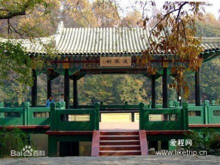 流徽榭,又名水榭,是中山陵紀念性建筑之一,建于1932年冬,它由中央陸軍軍官學校捐款建造,由陵園工程師顧文鈺設(shè)計。流徽榭三面臨水,一面傍陸,流徽榭以石階與岸相連。平面呈長方形,長13米,寬9米,四周圍有約一米高的藍色欄桿;卷棚頂,上覆白色琉璃瓦;立柱表面均為藍色;檐椽施以白漆藍紋;梁枋、雀替均施以彩繪;地面鑲嵌紅色八角形小瓷磚!傲骰臻俊比齻楷書大字,是由黃埔軍校第一期學員徐向前元帥親筆題寫的。