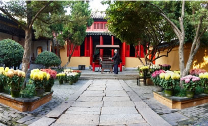 南湖園全福寺分為三個部門,東西兩個為花園,分別是為了紀念唐朝著名詩人劉禹錫、陸龜蒙和西晉文學家張季鷹而建,中間即是全福講寺。