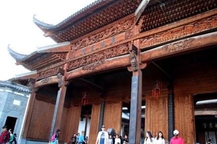 蕭江宗祠 又名永思祠,座落在婺源縣江灣鎮(zhèn)占坑村,距婺源縣城32公里,江灣約2公里。始建于明朝萬歷六年(1587年),后毀于太平天國戰(zhàn)火。1924年(民國十三年)重建,文化大革命期間又被拆毀。蕭江宗祠曾被譽(yù)為江南七十座著名宗祠中“最好的一座宗祠”為婺源古代四大古建之首。2003年9月,第三次重建。該祠盡顯王室氣派,占地面積達(dá)2400平方米,分前院、前堂、中堂、后堂四進(jìn)。前院為寬敞花園,設(shè)有青石護(hù)欄半月形蓮花池,內(nèi)養(yǎng)紅鯉魚、草魚、軍魚等多種魚類;前堂為五鳳樓、九脊頂、午朝門、月樓,梁材檐椽巧飾雕琢、畫面生動(dòng)、形態(tài)逼真;中堂粗梁大柱,鼓式石礎(chǔ),石階、石欄、月臺(tái)各具特色,匾額楹聯(lián)措詞秀麗、授意深長;后堂高于前堂,有樓閣安放靈牌。