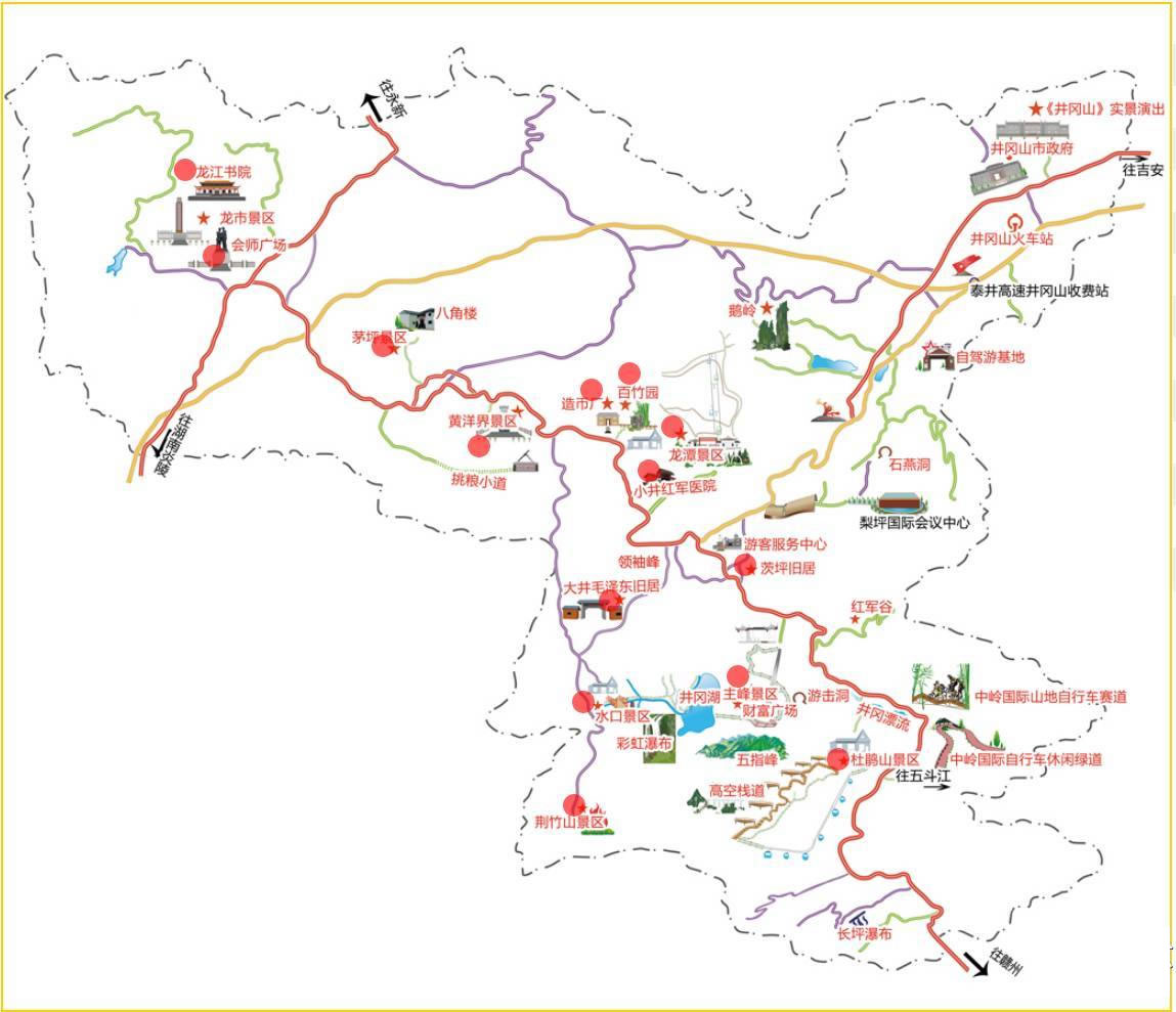 與部分城市里程:南昌352公里、吉安市131公里、贛州市181公里、泰和縣110公里、遂川縣88公里、距湖南省長(zhǎng)沙市365公里、茶陵144公里、炎陵88公里。 |