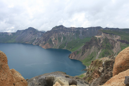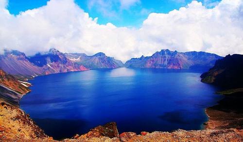 長(zhǎng)白山天池,又稱白頭山天池,坐落在吉林省東南部長(zhǎng)白山自然保護(hù)區(qū)內(nèi),是中國和朝鮮的界湖,雙方各擁有一部分水域。天池南北長(zhǎng)約4400米,東西寬約3370米,其池水的海拔高度為2189.1米,最深處為373米,平均204米,水面面積9.82平方千米,周長(zhǎng)13.1千米。據(jù)《長(zhǎng)白山江岡志略》記載:“天池在長(zhǎng)白山巔的中心點(diǎn),群峰環(huán)抱,離地高約20余里,故名為天池。”