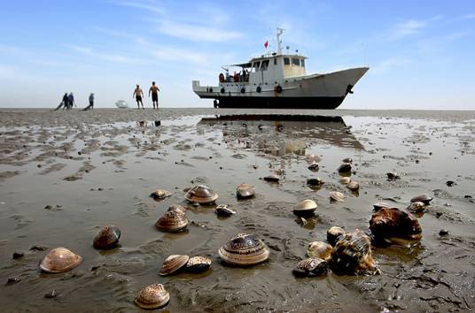 渤海遼東灣的萬(wàn)頃碧波,遮掩著數(shù)不盡的珍奇異寶。盤錦市西南部的二界溝海邊的蛤蜊崗就是一處神奇的所在。乘坐漁船,來(lái)到蛤蜊崗上,等潮水漸漸地落下去,一片金色沙灘從海水中顯露出來(lái),挽起褲腿,甩掉鞋子,光腳踩上松軟的沙灘,令人有說(shuō)不出的爽適與愜意。