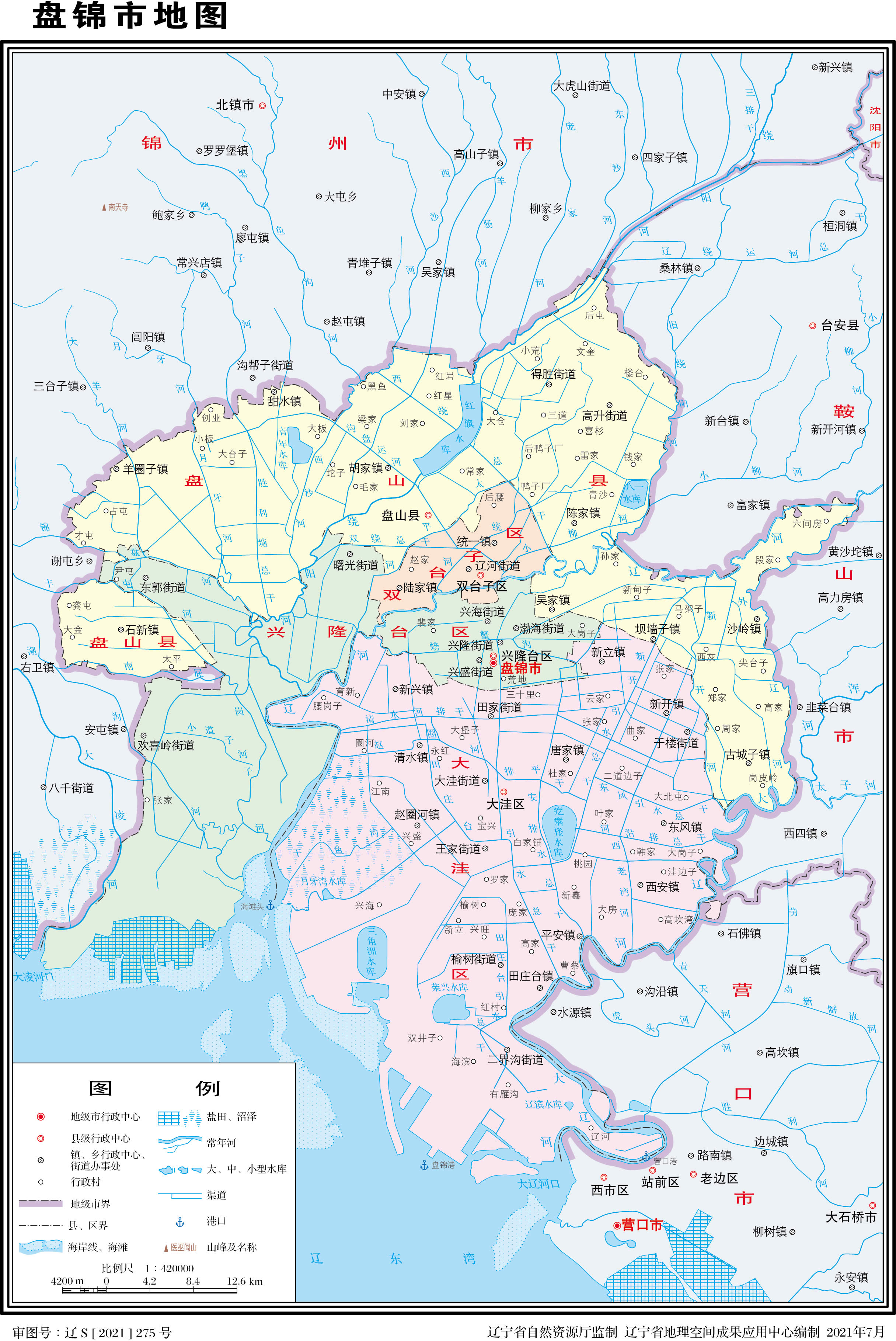 盤錦市轄3個(gè)區(qū)、1個(gè)縣:
