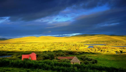 春季,五月的興安嶺上杜鵑花爭奇斗艷,尚未消融的皚皚白雪映著火紅的杜鵑花,是難得一見的人間圣景;夏季的呼倫貝爾氣候宜人,平均氣溫在16℃——21℃之間,是避暑的最佳去處,那醉人的綠色招引著你,站在草原上,看藍天上云卷云舒,心胸就會像草原一樣廣闊。鄂倫春族篝火節(jié)、草原那達慕、鄂溫克族瑟賓節(jié)、祭敖包等民族節(jié)日異彩紛呈。秋季奪人耳目的是那林海的秋色,聽林中松濤陣陣,賞亭亭玉立的白樺,到四方山、達爾濱羅看日出日落,大自然的美景令人留連忘返;走近冬天的呼倫貝爾,一個冰雕玉砌的世界,冰雪節(jié)的圣會,讓您充分領(lǐng)略青松傲雪、暢游林海雪原的豪氣和由冰峰、雪嶺、冰雕構(gòu)成的一派雪韻風(fēng)情。
