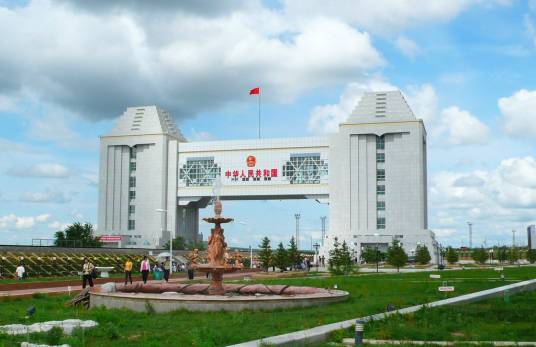 呼倫貝爾滿洲里國門景區(qū),位于內(nèi)蒙古呼倫貝爾滿洲里市,現(xiàn)為第五代國門,建于2008年,總寬105米,高43.7米,厚度46.6米,共八層,是國家5A級旅游景區(qū)中俄邊境旅游區(qū)的重要組成部分。