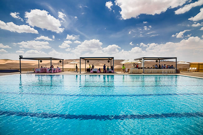 在沙漠中各種深淺的大型泳池里,以各種泳姿釋放自己——在沙丘起伏無際的沙漠里——在沙漠中屬于自己的水的世界里……累了,就躺在清爽的沙灘床上,美美地過上幾個小時,同時可以與同行的人邊吃邊喝邊聊哦,別睡著了,演出一定會有的,悅沙島每天會有十多場不同的演出或比賽,是藝術(shù)的、是體育的……